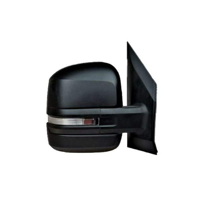 Pravé zpětné zrcátko MAN TGE od r.v. 11/2016 - , elektricky ovládané, vyhřívané, černé, vypouklé sklo, s blikačem LED, elektricky sklápěcí, s funkcí hlídání změny jízdních pruhů, krátké, 10 pinů.